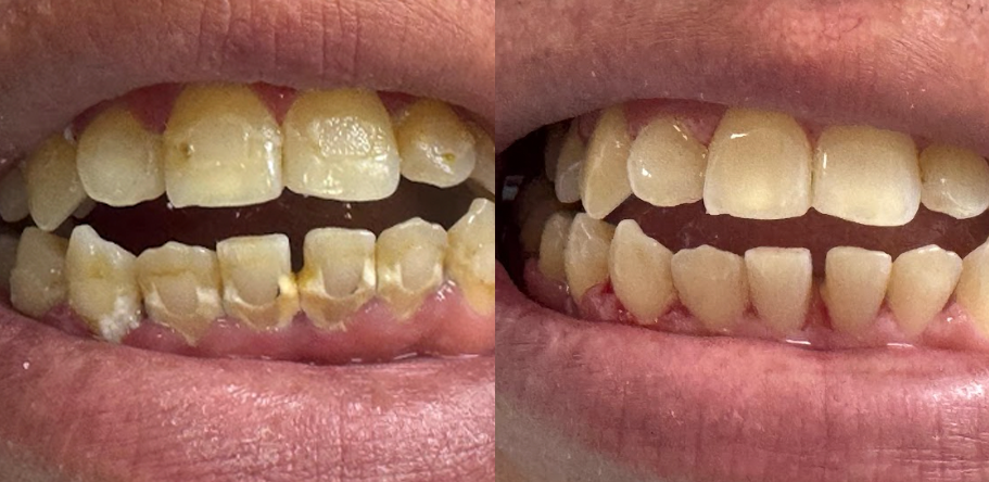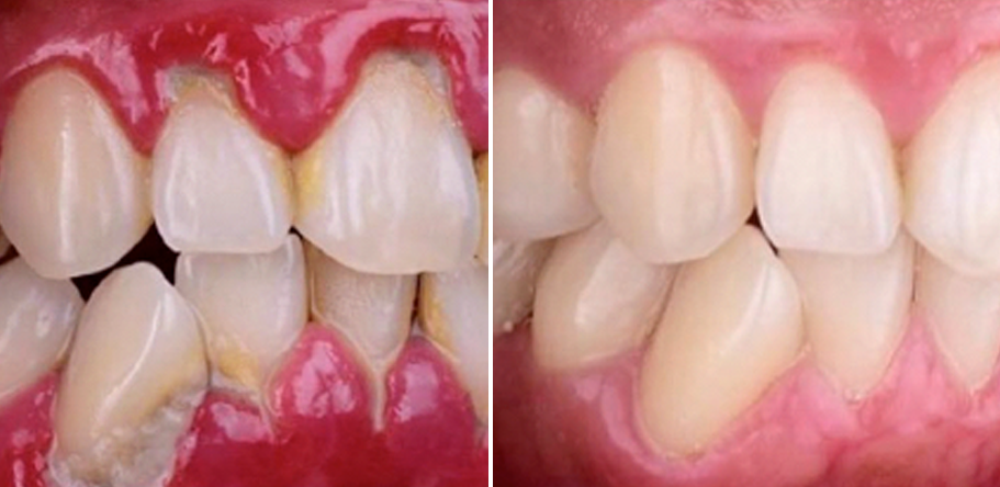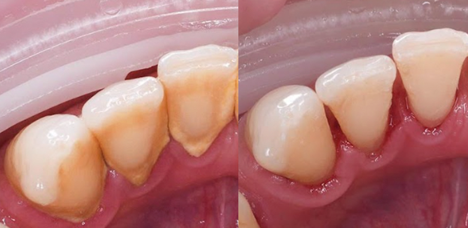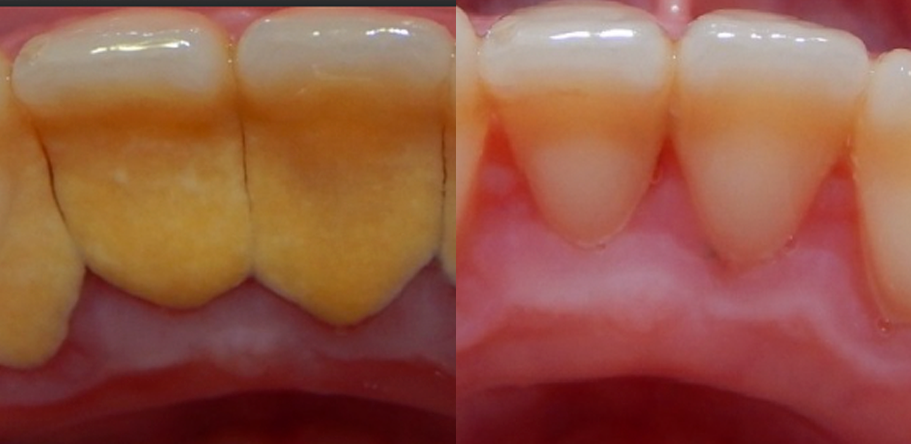 • Intermediate cleaning (a device called Cavitron is used, which helps remove accumulated plaque between the teeth; plaque or dental bacteria is found on the surface of the teeth).